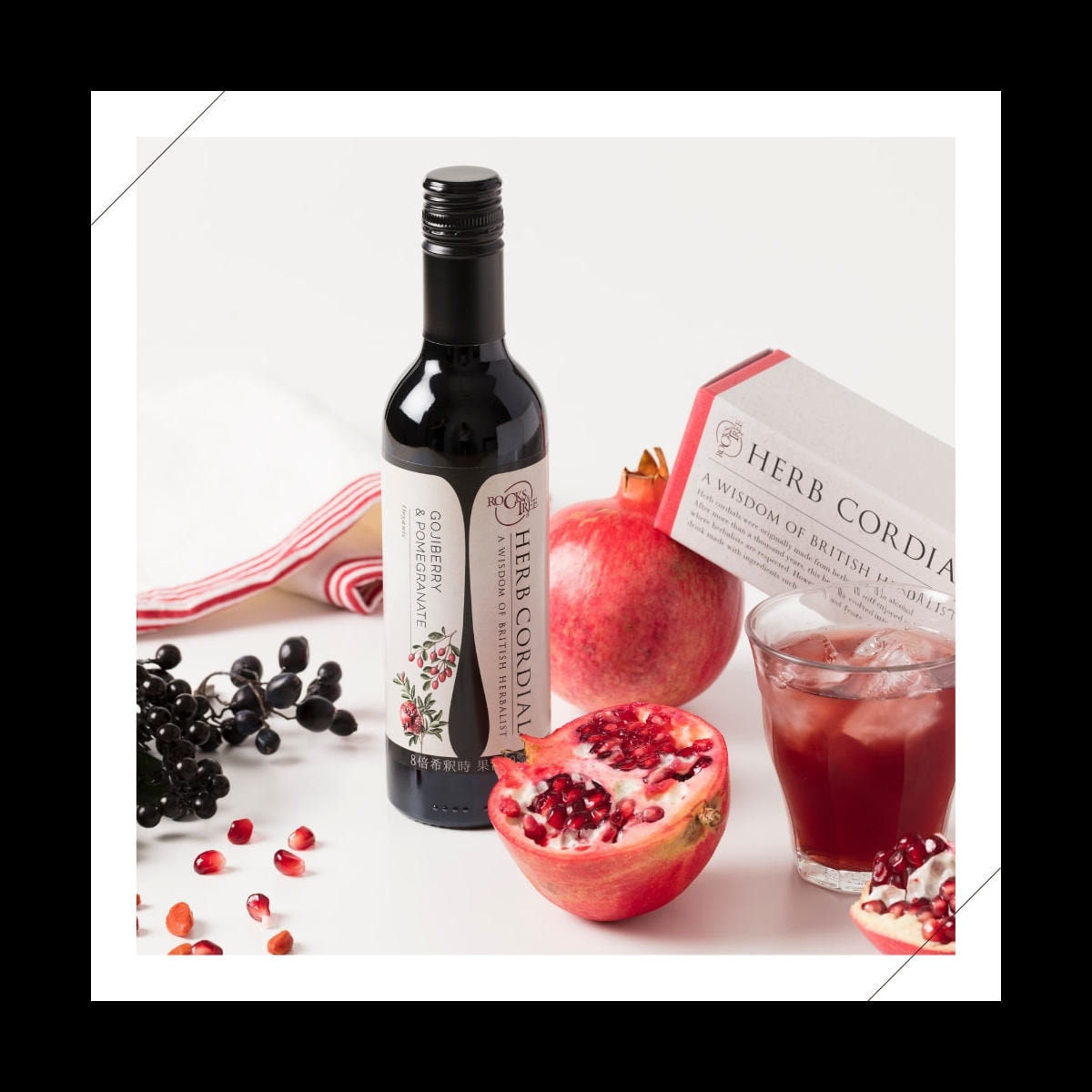 コーディアルは、ハーブや果物をシロップに漬け込んだ、伝統的なノンアルコール濃縮飲料です。1000年以上の時を経て飲み継がれているコーディアルを、生活の木は、おいしさに+話題の素材で進化させています。水、炭酸水、お湯、ハーブティー等で、7~8倍に希釈してお飲みください。ザクロをはじめとした数種の果実と、人気のスーパーフード「ゴジベリー(クコの実)」のジュースを配合しました。砂糖の代わりにアガベシロップで甘みを加えています。