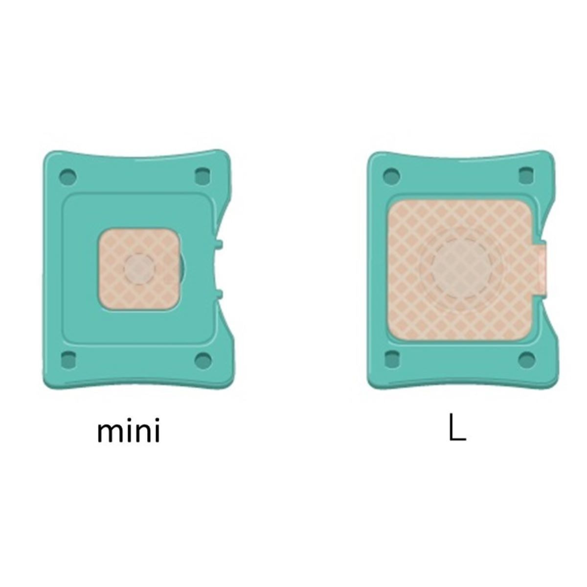 Lサイズはツボ全体にしっかりと、miniサイズは目立たせたくない部位にピッタリの大きさです。