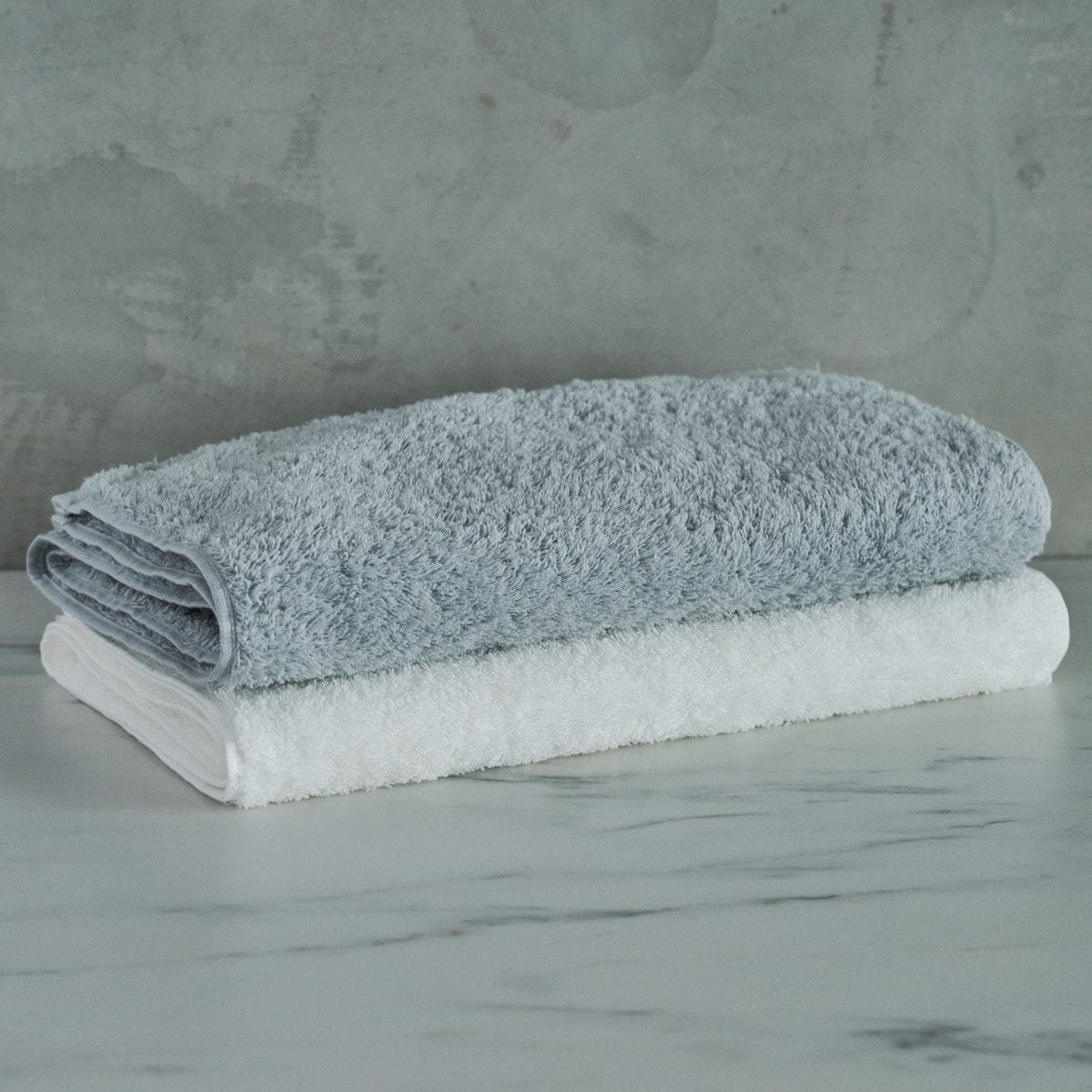 通常の糸にはない構造の特殊な糸は、空気をたっぷりと含んでいるので、ボリュームと軽量感、吸水性、毛羽落ちの少なさなど、良いところを全部かなえた「魔法のタオル」です。
